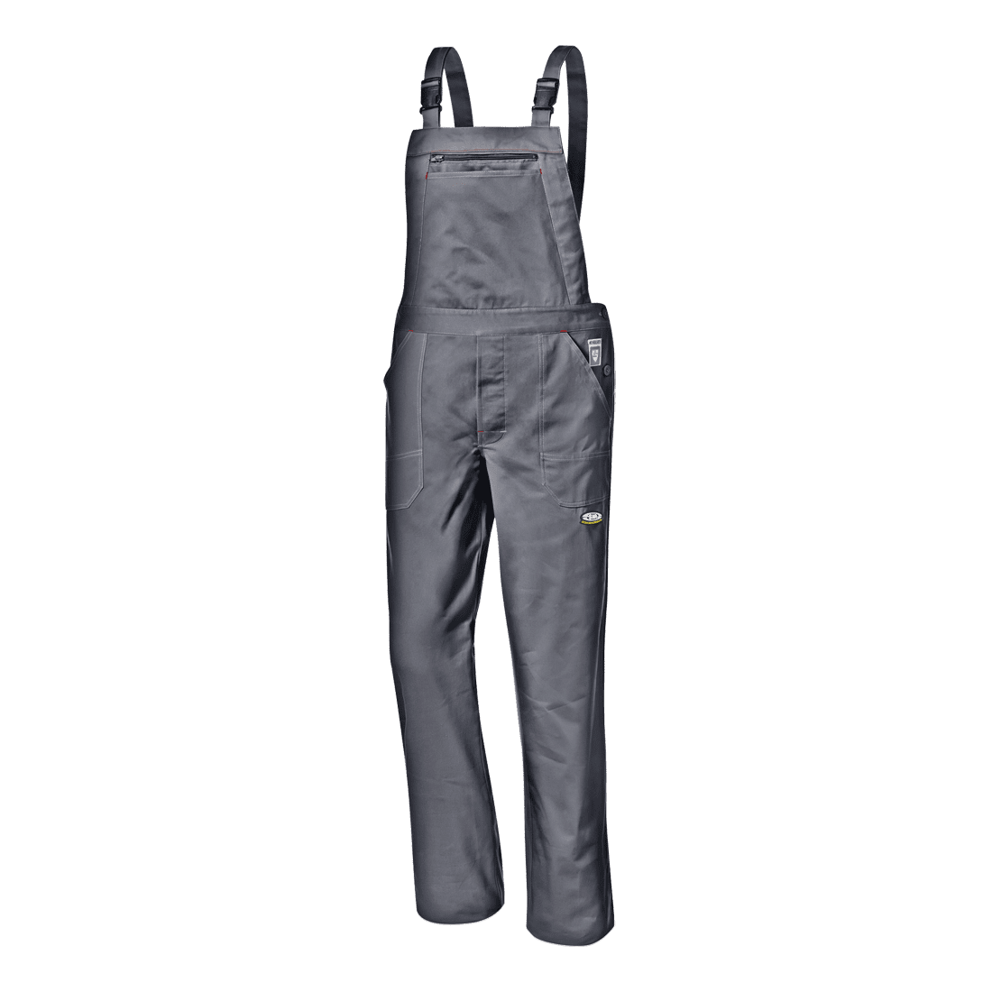 Kantáros nadrág 100% Massaua "beavatott" pamutból, 280 g/m². Állítható, rugalmas vállpántok, gyors-záras csatokkal. Dupla mellzseb; két ferde zseb; jobb lábszáron funkcionális zseb mérőszalagnak. Tripla varrás a lábszárak külső részén és a mellzsebnél. Rugalmas derékrész.