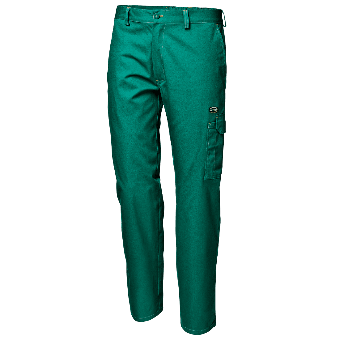 100% Massaua "beavatott" pamutból, 280 g/m². Tripla varrás a lábak külső oldalán. Két ferde zseb; egy oldalzseb tollzsebbel a bal, és egy colostok zseb a jobb lábszáron; egy darab gombos farzseb; rugalmas derékrész. Mechanikai hatásoknak ellenálló.