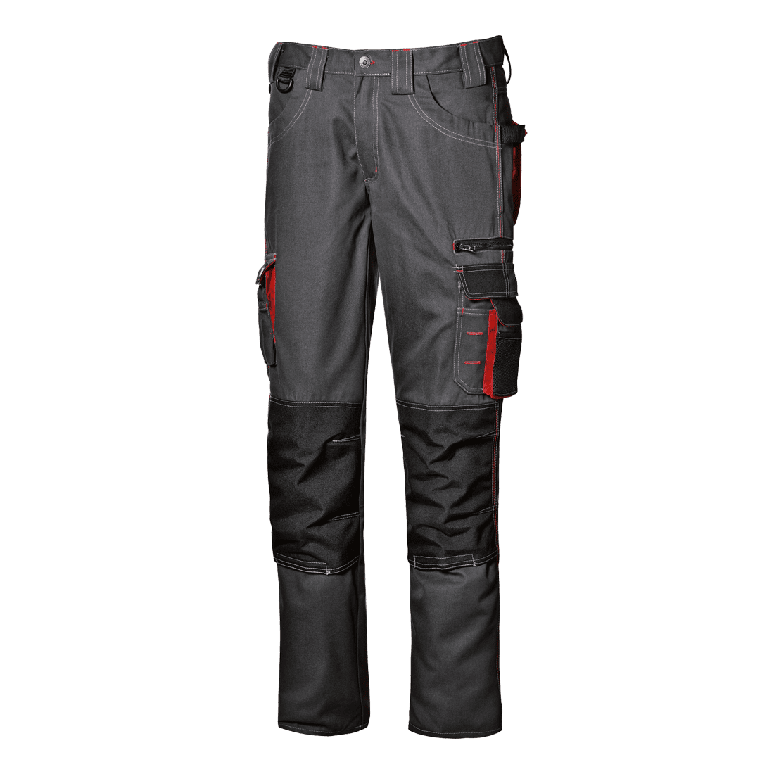 Többzsebes nadrág 65% poliészterből és 35% pamutból, 300 g/m². Cipzáras slicc; két ferde zseb; fedett, patentos farzsebek; dupla mérőszalag zseb a jobboldalon; a baloldalon szerszámtartó fül és két zseb, az egyik cipzárral a másik tépőzáras fedéssel. Megerősített térdzsebek, dupla varrás.