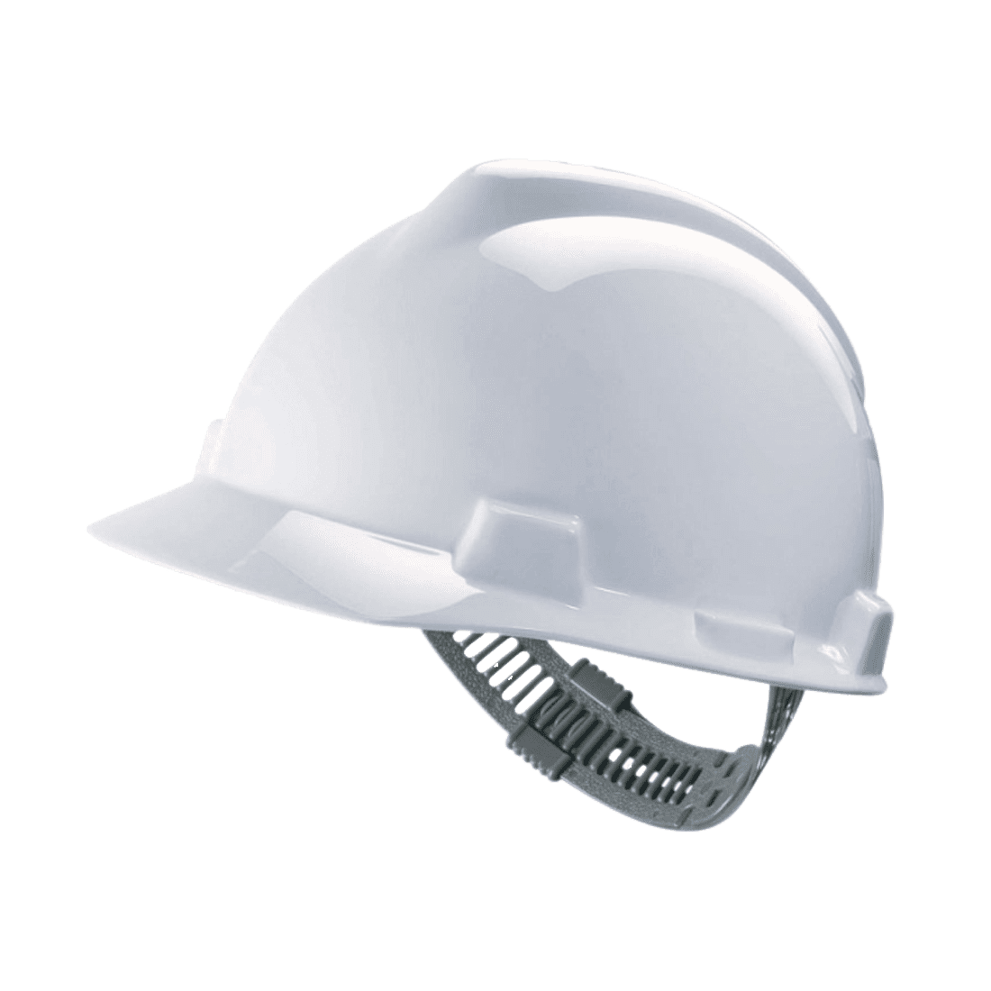 UV álló, nagy ellenálló képességű, polietilén (HDPE) munkavédelmi sisak, 4 pontos fejhámmal, szövet pántokkal.