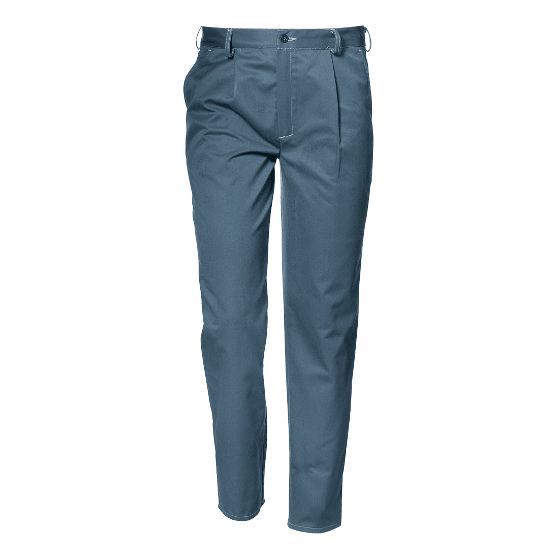 Gombos, cipzáras munkavédelmi derekas nadrág. Két ferde zseb és tépőzáras, fedett farzseb.