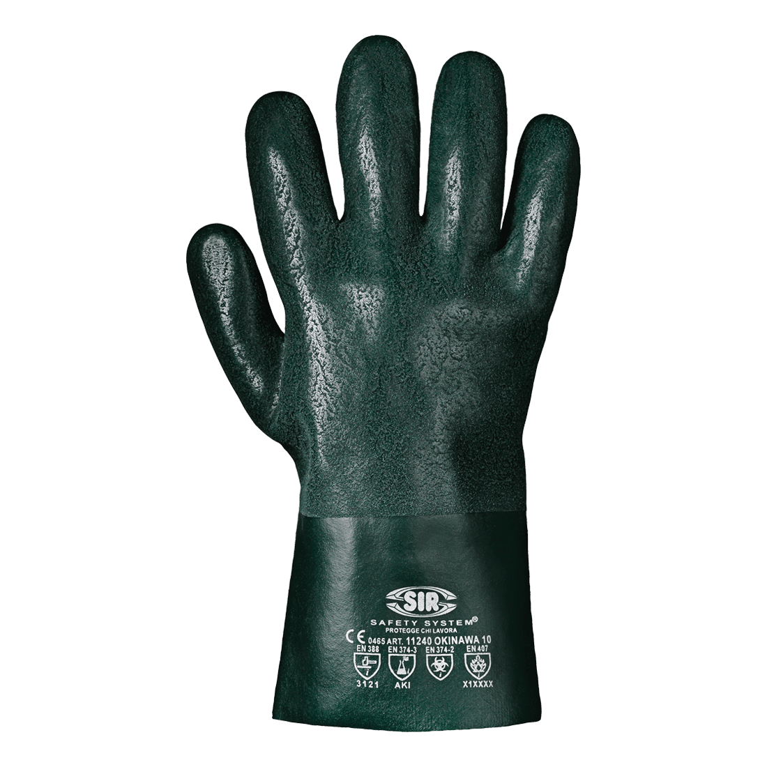 Dupla PVC borítású, 27 cm hosszú kesztyű. Pamut béléssel, kitűnő mechanikai és kémiai védelemmel.