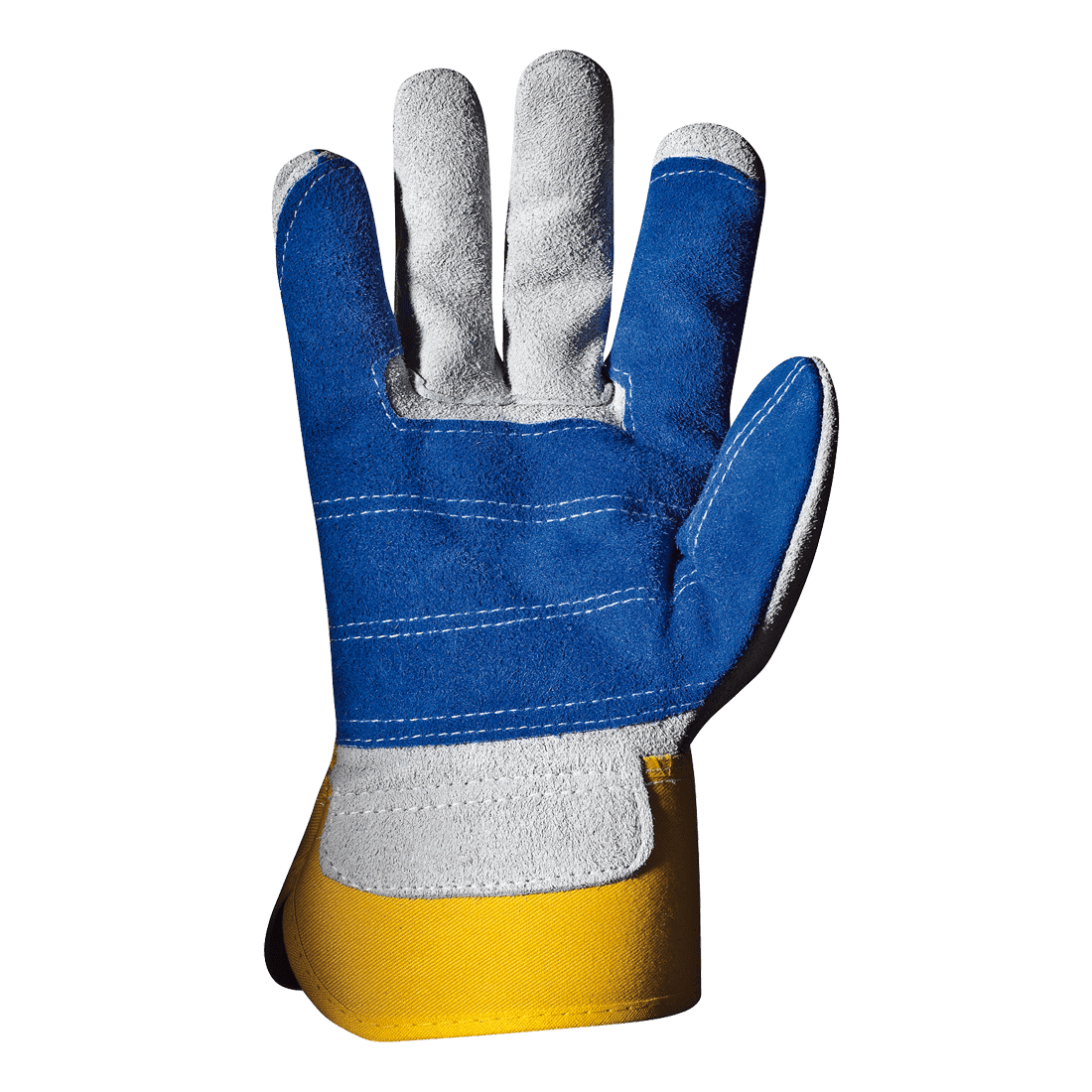 Hasított bőr kesztyű, nehéz pamut kézháttal, merev, pamut csuklórésszel.