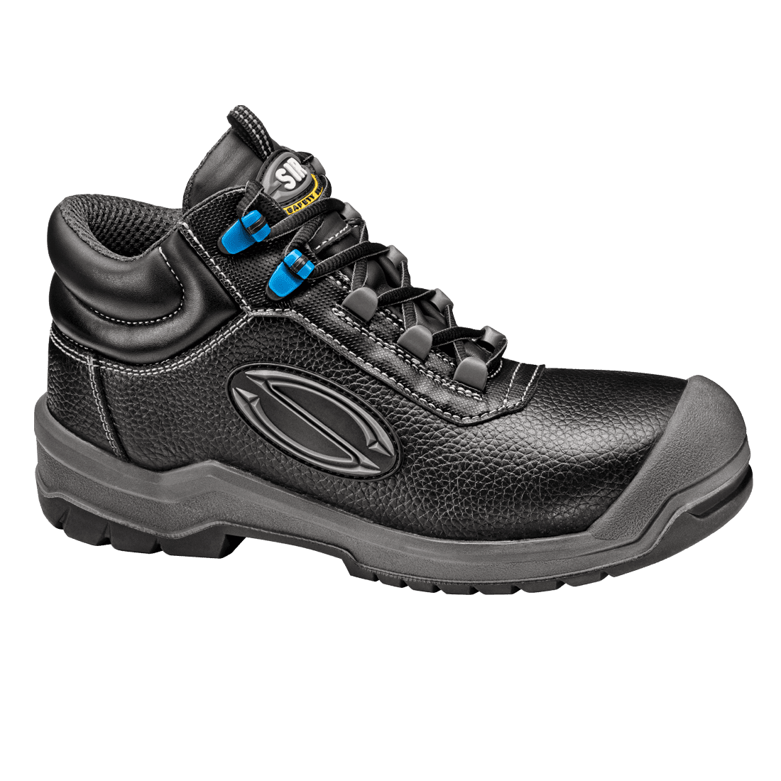 Acél lábujjvédelem (200 J), acél talpátszúrás elleni védelem, valódi bőr felső réteg.