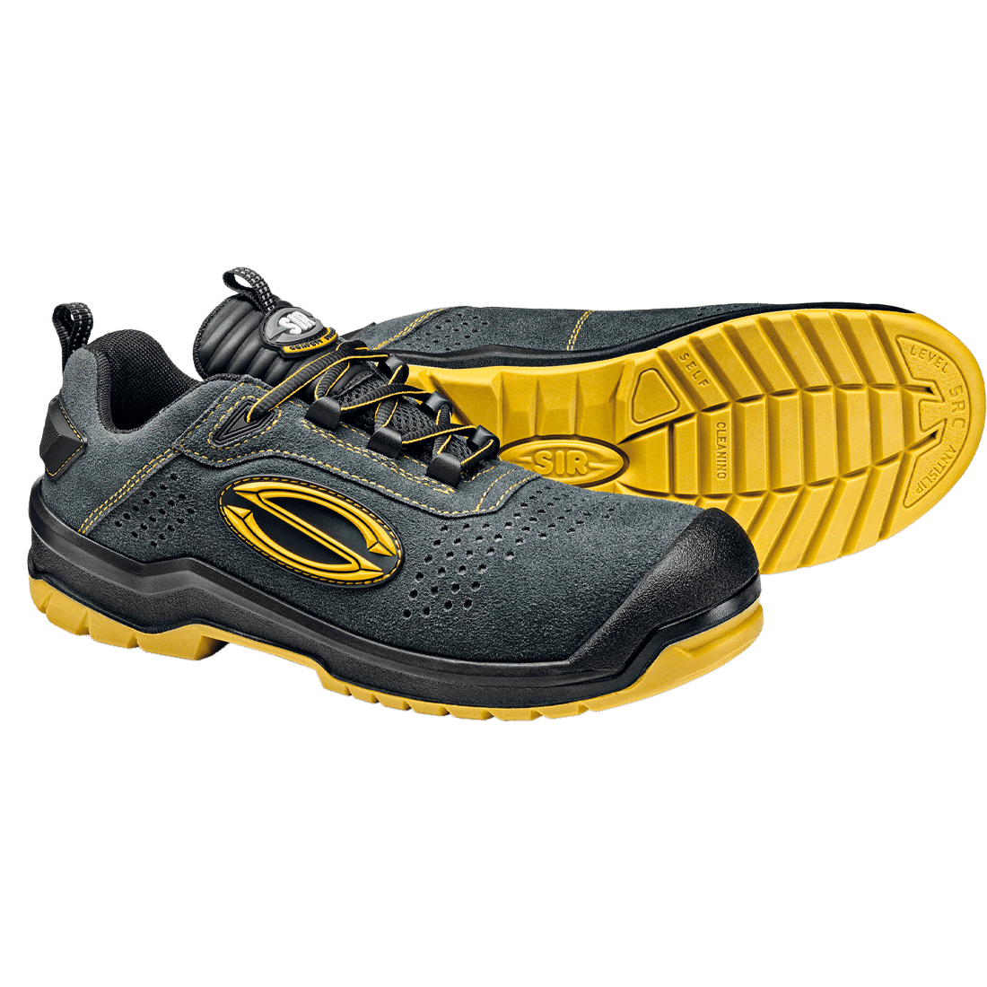 Kompozit lábujjvédelem (200 J), és Zero Penetration kompozit talpátszúrás elleni védelem, perforált bőr felső réteg.