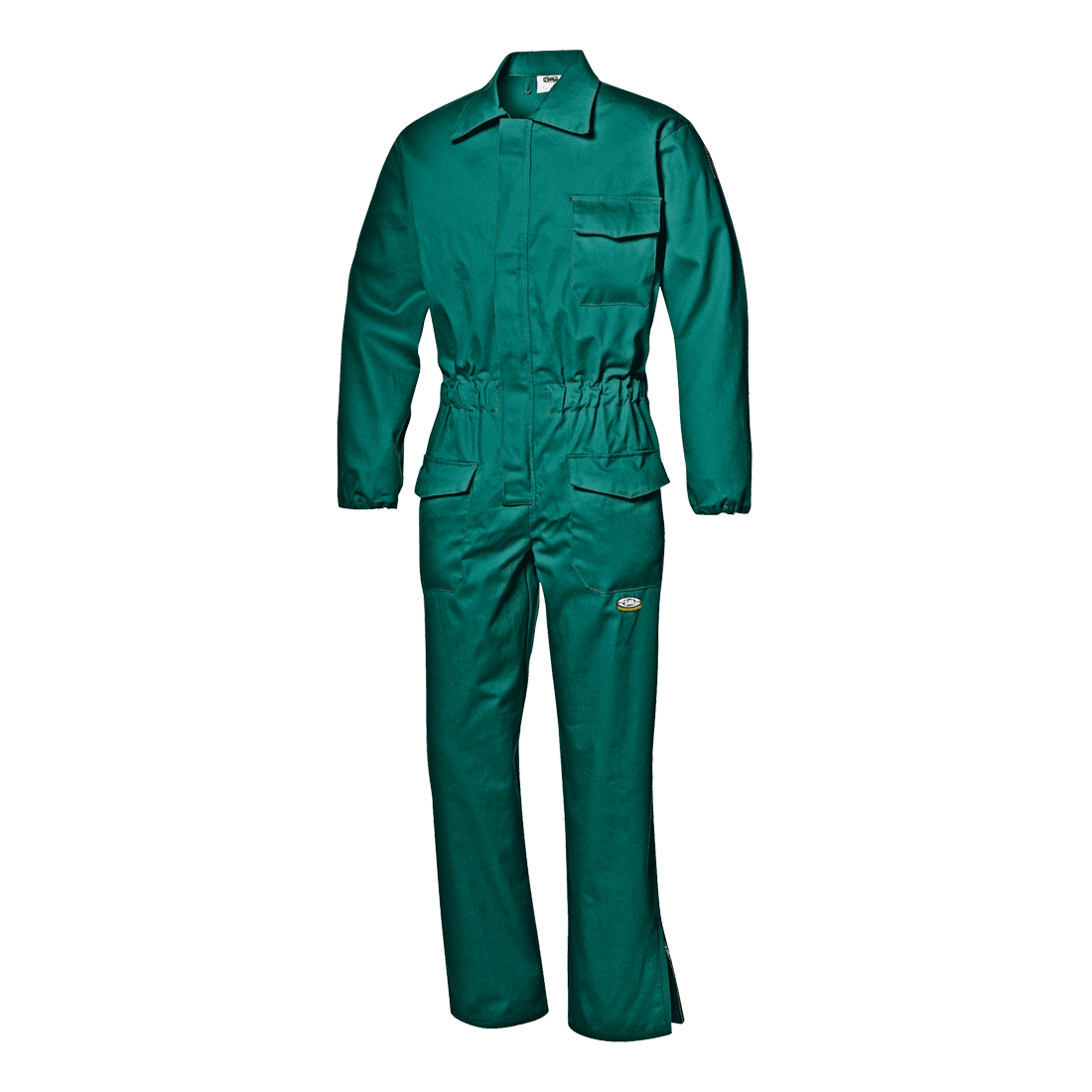 100% lángálló pamutból (315 g/m2) készült overál, rejtett cipzárral, rugalmas mandzsettákkal. Két fedett, patenttal záródó oldalsó és egy mellzseb. Cipzáras bokarész.
