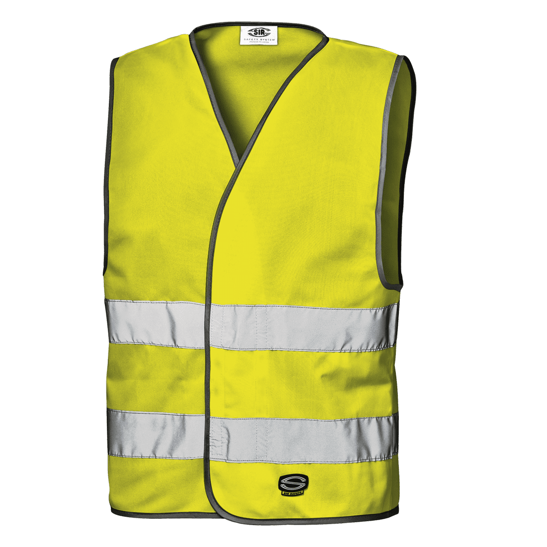 Tépőzáras, V-nyakas, láthatósági mellény 100% poliészterből (135 g/m²).