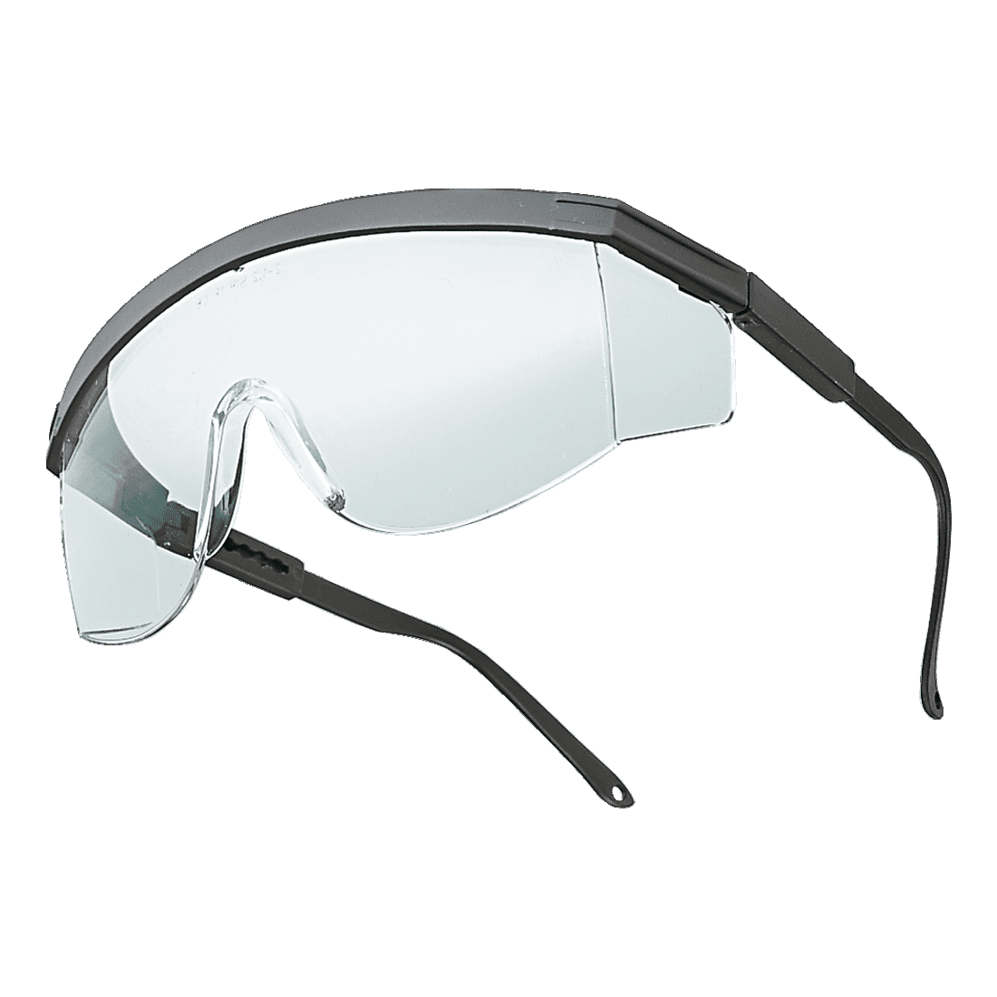 Mono lencsés védőszemüveg; állítható hosszúságú és magasságú szárakkal. A konvex, karcolásálló lencsék hozzájárulnak a párásodás mentességhez.