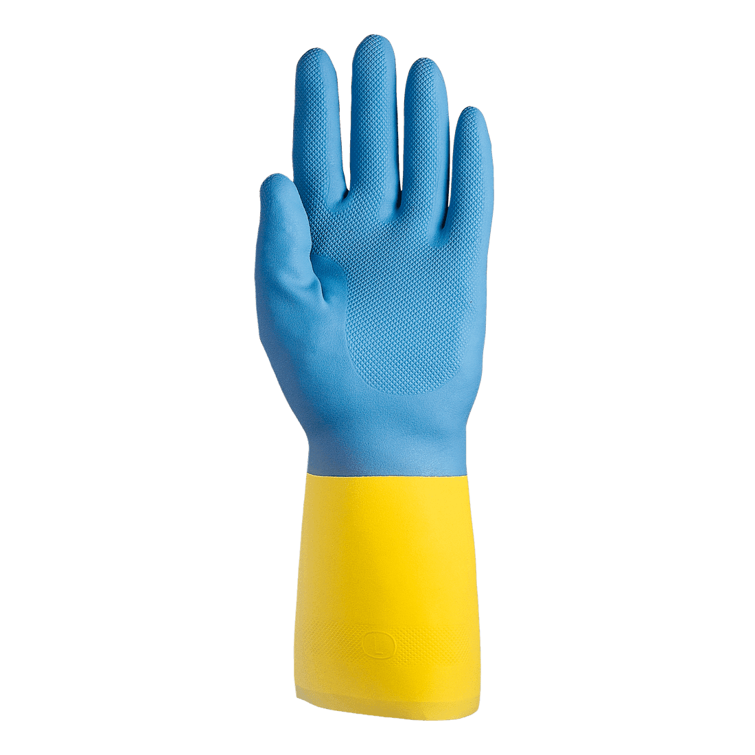 Latex gumi kesztyű neoprénnel, 0,07 mm vastag, 31 cm hosszú. Rugalmas és kényelmes viselet, jó mechanikai védelmi tulajdonságokkal. Élelmiszeripari tevékenységhez is használható.